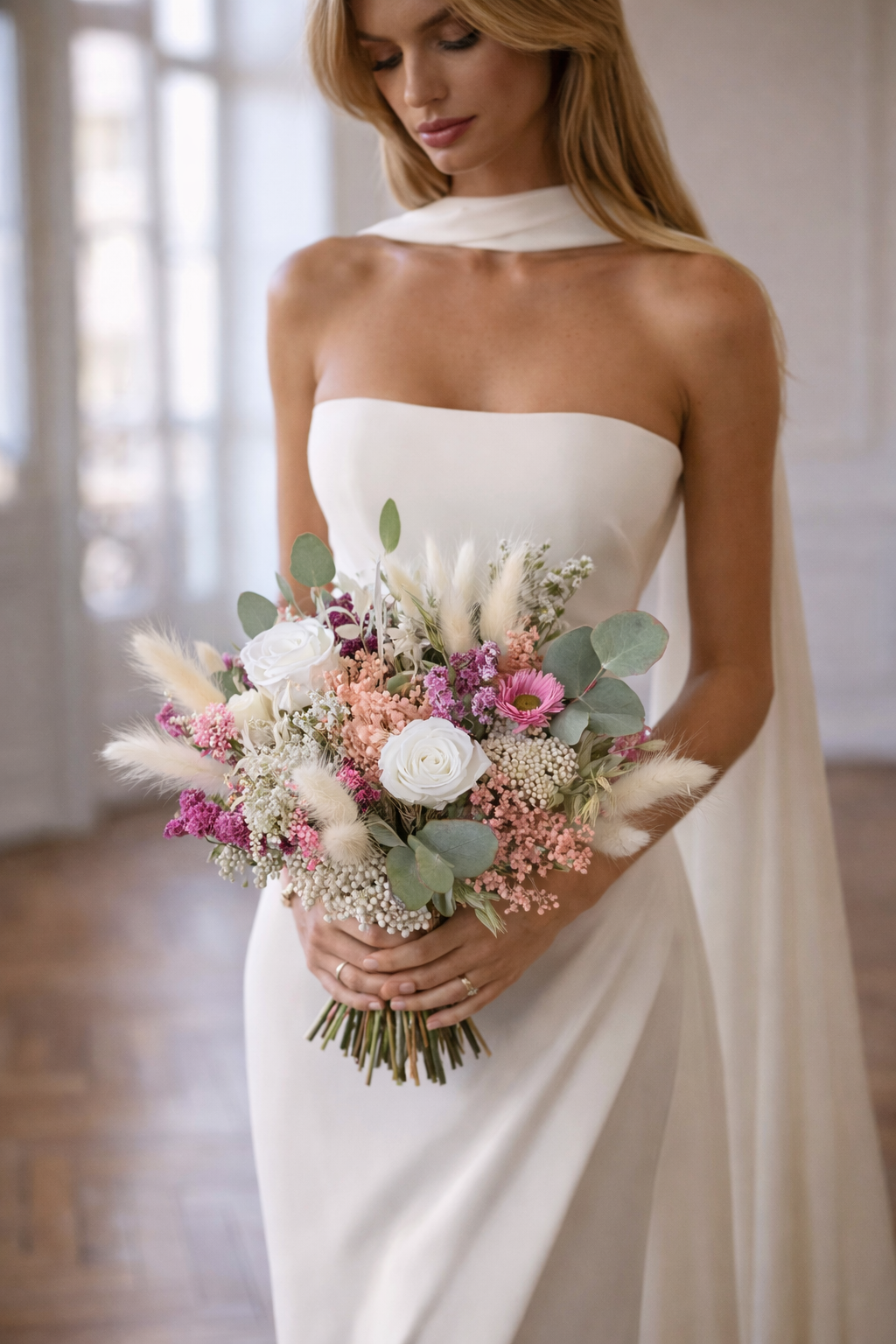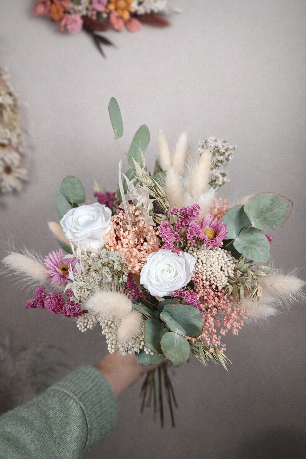 • Bouquet de mariée en fleurs séchées et stabilisées